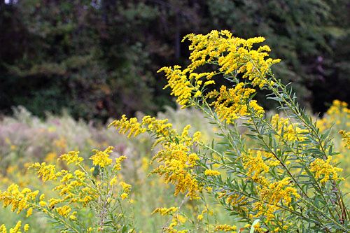 Deep purple blooms with dark bees.