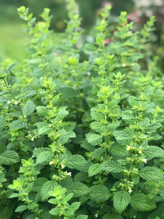 Lemon balm has long stems and deep green foliage with a beautiful lemon scent.